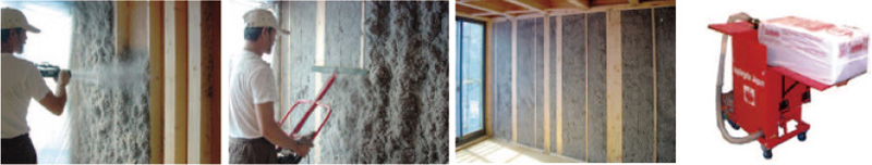 材料には、米国新聞紙を使用。完全な形状のセルロースをたっぷり含んだ断熱材に風圧をかけながら霧の中を通過させることにより、セルロースが互いに絡み合い、接着剤が活性化されます。吹付け後は自然乾燥によって断熱層がしっかり固定されます。日本の新聞紙などのようにセルロース分が少なく、セルロースが断裁されている材料では、アップルゲートセルロース断熱のようにウォール・スプレーはできません。良質な素材だからこそ、高品質の断熱材をつくるこができ、優れた断熱施工ができるのです。